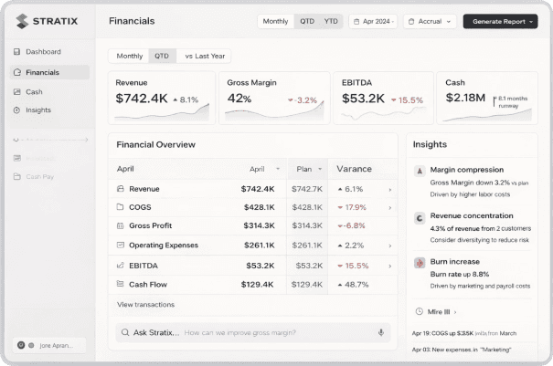 We built Stratix to deliver a full lifecycle solution that helps our clients architect superior outcomes from bookkeeping to strategic CFO services to M&A advisory. We help our clients build the right foundations and then follow through.